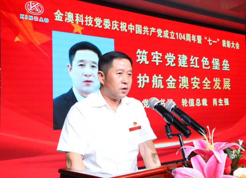 6月30日晚,金澳集團(tuán)在多功能廳隆重召開慶祝中國共產(chǎn)黨成立104周年暨“七一”表彰大會。金澳科技黨委書記、輪值總裁肖生強(qiáng),黨委副書記、副總裁王自力等黨委班子成員、各黨支部黨員、入黨積極分子參加。