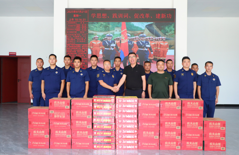 7月21日,金澳科技副總裁吳時斌、消防科科長郭威一行到潛江市消防救援大隊開展“夏日送清涼”慰問活動,為奮戰(zhàn)在高溫一線的消防官兵送去防暑飲品。