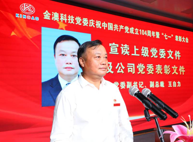 6月30日晚,金澳集團(tuán)在多功能廳隆重召開慶祝中國共產(chǎn)黨成立104周年暨“七一”表彰大會。金澳科技黨委書記、輪值總裁肖生強(qiáng),黨委副書記、副總裁王自力等黨委班子成員、各黨支部黨員、入黨積極分子參加。
